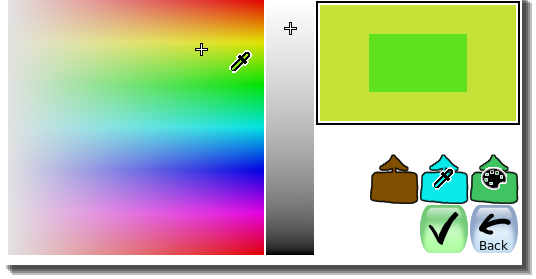 Click the green checkbox button to select the color, or the "Back" button to dismiss the popular-up without picking a new colour.